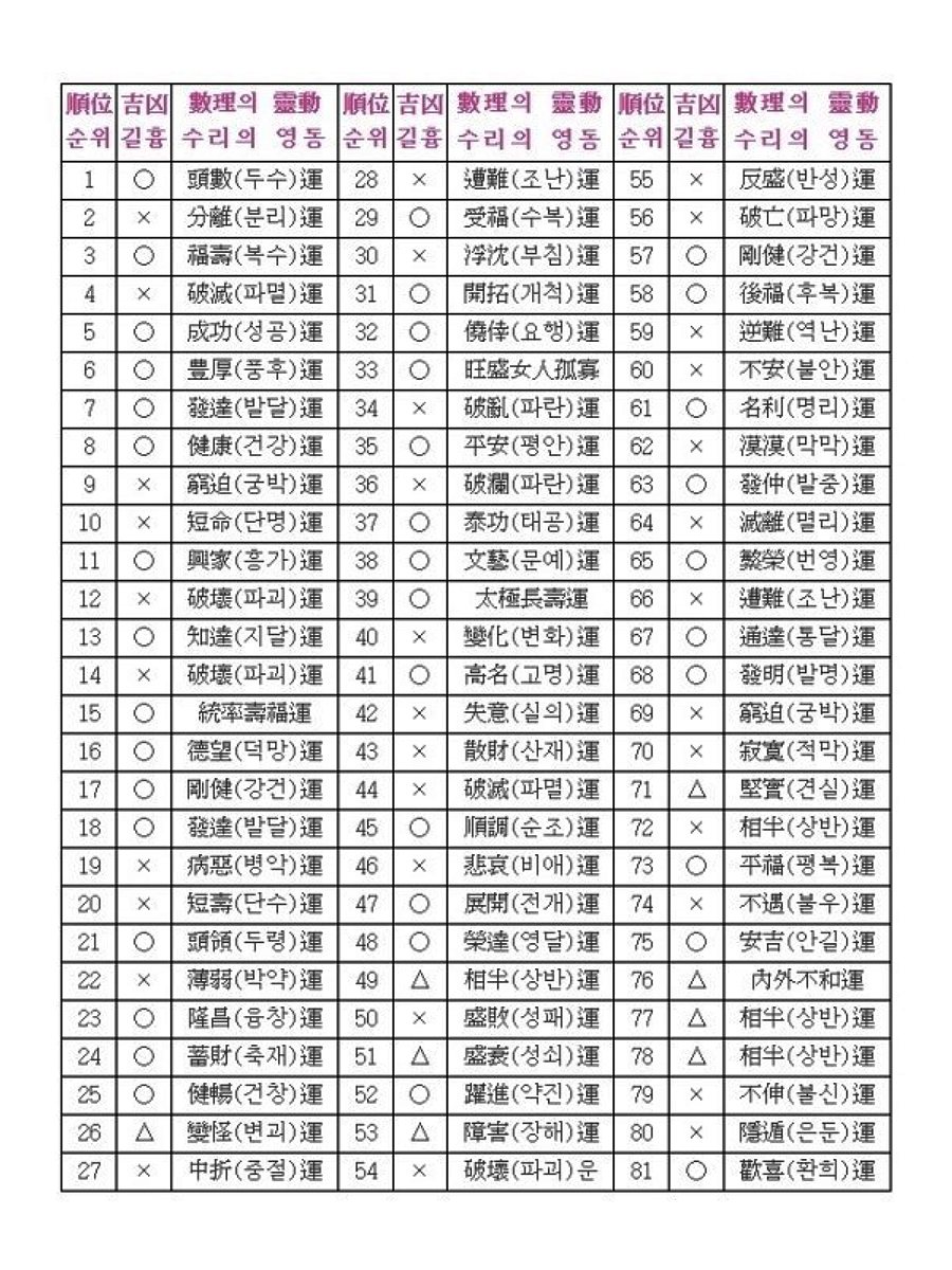 수리 성명학 81數(수) 개요